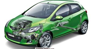 In developing the new Mazda2, Mazda took a fresh look at the global sub-compact car market, where there is intense competition among many diverse brands and vehicles, and worked to identify the truly important attributes for a global B-car. These attributes include superior fuel efficiency , which is crucial for low running costs and reduction of CO 2 emissions; easy-to-drive functionality and operability; Mazda's unique dynamic performance , which delivers enjoyable, comfortable driving; and a design that instantly grabs attention. While many other carmakers have enlarged their small cars, Mazda was able to reduce the size of its B-car with the new Mazda2 (-40 mm now at 3885 mm) and still meet the mainstream demands of sub-compact customers while enhancing safety .