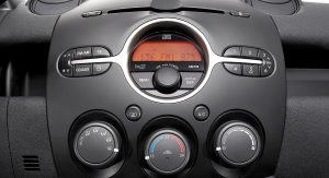 Despite the dark-colored interior trim of the car shown here, it's obvious that Mazda designers wanted to create a "playful" environment for the Mazda2 – Demio. Maybe a bit too playful as the center console with the side air-vents looks like "Mickey-Mouse", but ok, I definitely prefer this interior than the boring-to-death cabin of the current model.